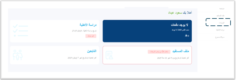2- اختيار أيقونة "الزيارات" من الصفحة الرئيسية