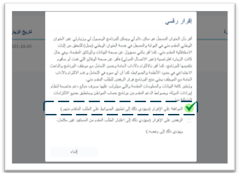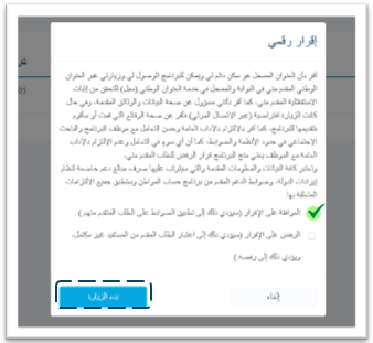 4- عند بدء الزيارة، يظهر الإقرار الرقمي الذي يتضمن التعليمات والشروط الواجب الاطلاع عليها.